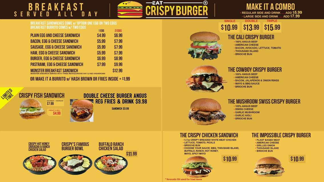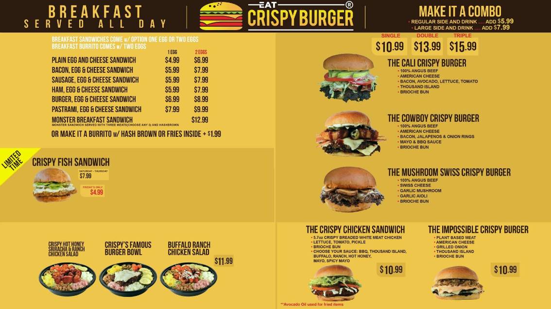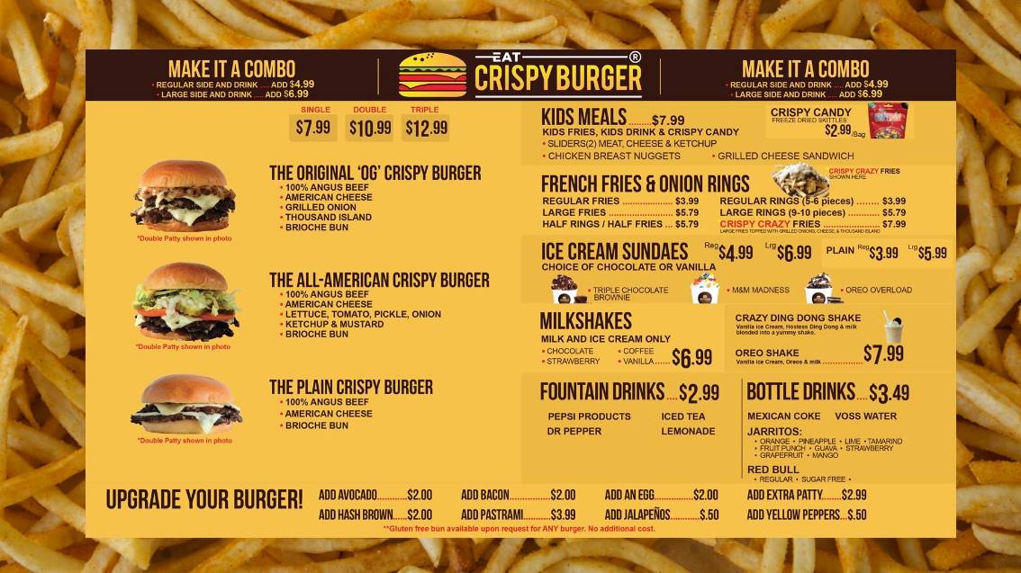 Eat Crispy Burger started in 2022 with the first location in Encinitas, CA.Now 4 other locations, La Jolla, Convoy, National City and Oceanside.